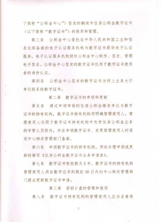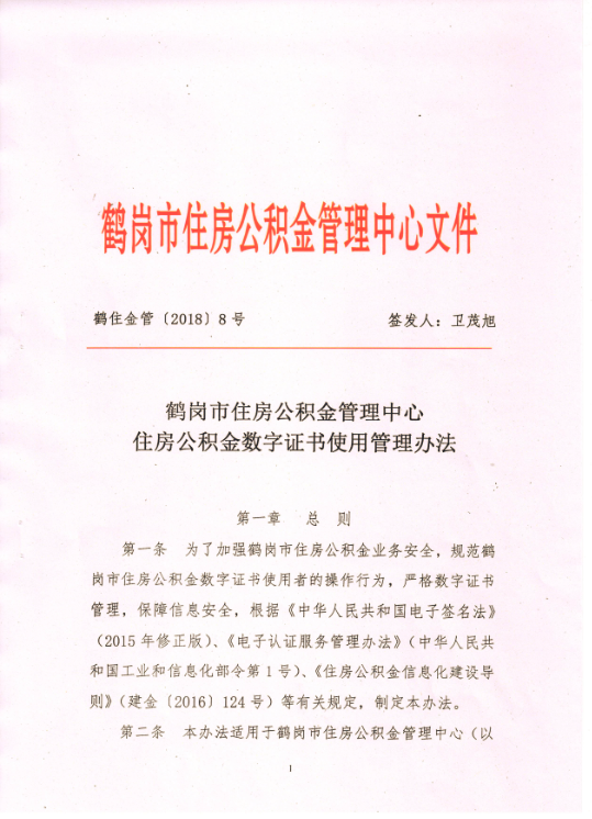 关于印发鹤岗市住房公积金管理中心 《住房公积金数字证书使用管理办法》的通知